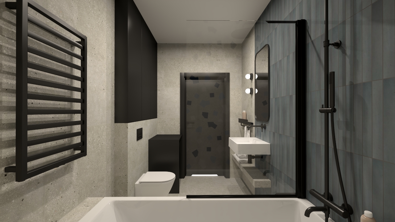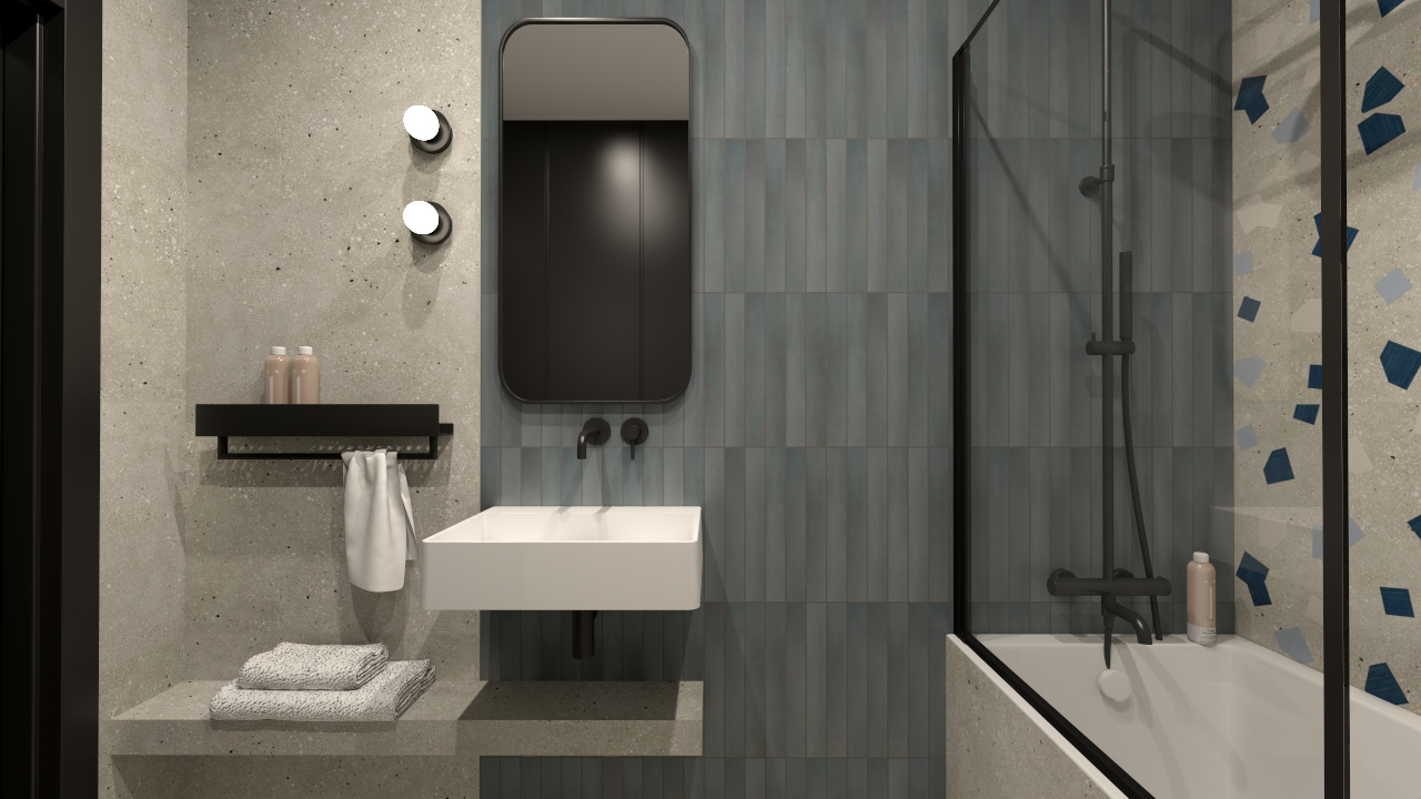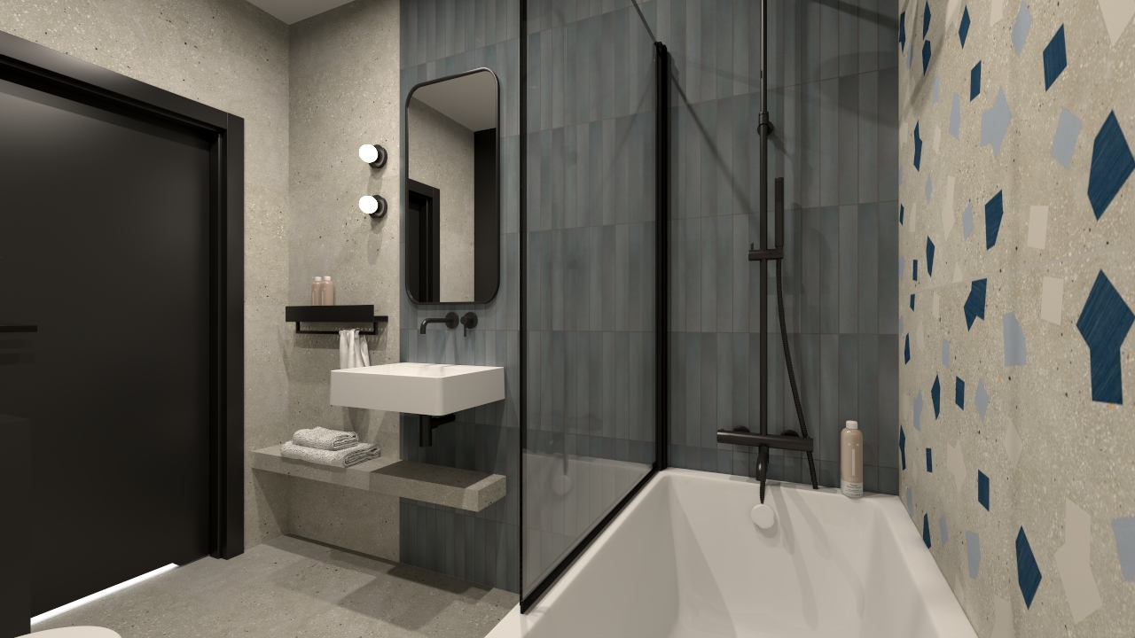 Łazienka z Ama Grigio i Massimo Smoke Blue